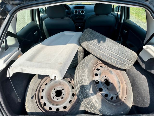 • Weitere Ausstattung: Airbag Beifahrerseite, Airbag Fahrerseite, Außenspiegel mech. von innen verstellbar, beide, Bordcomputer, Drehzahlmesser, Heckscheibe heizbar, Isofix-Aufnahmen für Kindersitz an Rücksitz, Karosserie: 5-türig, Kopfstützen hinten, Kopfstützen vorn, Lenksäule (Lenkrad) höhenverstellbar, Motor 1,1 Ltr. - 44 kW, Pyrotechnischer Gurtstraffer, Rücksitz geteilt, Seitenairbag vorn, Sitzbezug / Polsterung: Stoff, Sonnenblenden mit Spiegel (beleuchtet), Stoßfänger Wagenfarbe, Verglasung getönt, Zeituhr (digital)