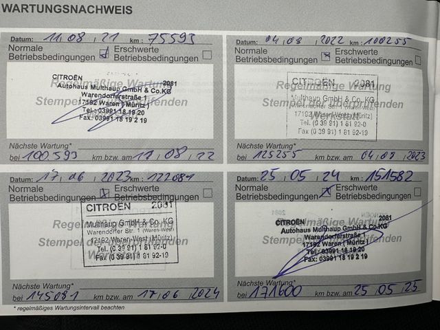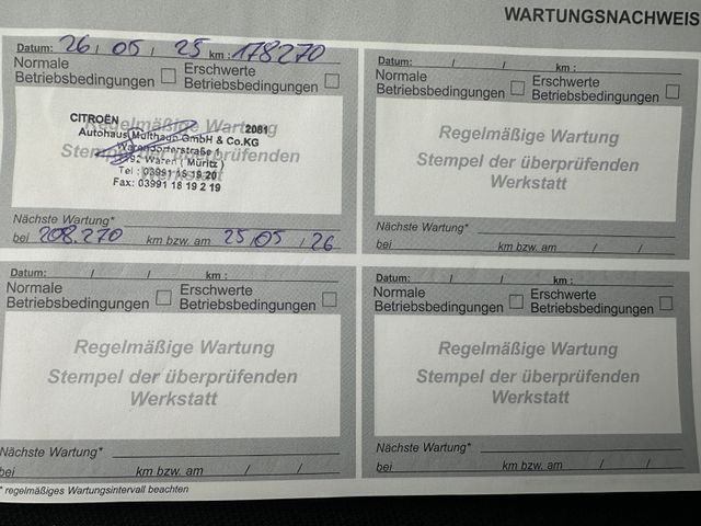 • Weitere Ausstattung: Airbag Beifahrerseite abschaltbar, Airbag Fahrer-/Beifahrerseite, Audio-Navigationssystem, Audiosystem: Radio mit CD-Player inkl. MP3-Wiedergabefunktion, Außenspiegel elektr. verstell-, heiz- und anklappbar, Bordcomputer, CITROEN eTouch, Connecting-Box, Einschaltautomatik für Fahrlicht, Elektr. Bremskraftverteilung, Fahrassistenz-System: Notbrems-Assistent, Fensterheber elektr. hinten mit Impulsgeber, Gepäckraumabdeckung / Rollo, Heckleuchten LED, 3D-Optik, Isofix-Aufnahmen für Kindersitz an Rücksitz, Karosserie: 5-türig, Klapptisch in Fahrer- und Beifahrersitzlehne integriert, Klimaautomatik, Kofferraumabdeckung, Kopf-Airbag-System, Modellpflege, Motor 1,5 Ltr. - 96 kW Blue-HDI FAP, Panorama-Frontscheibe, Parkbremse elektrisch, Pyrotechnischer Gurtstraffer, Reifen-Reparaturkit, Rücksitze als Einzelsitze, klappbar / verschiebbar, Schadstoffarm nach Abgasnorm Euro 6d-TEMP, Schublade / Ablagefach unter Sitz vorn links, Schublade / Ablagefach unter Sitz vorn rechts, SCR-System (AdBlue-Technologie), Seitenairbag vorn, Seitenscheiben Akustikglas, Sitz vorn links höhenverstellbar, Sitz vorn rechts höhenverstellbar, Sitzbezug / Polsterung: Stoff, Sitzlehnen vorn klappbar, Stop-Start-Anlage, Vorrüstung für Standheizung Webasto